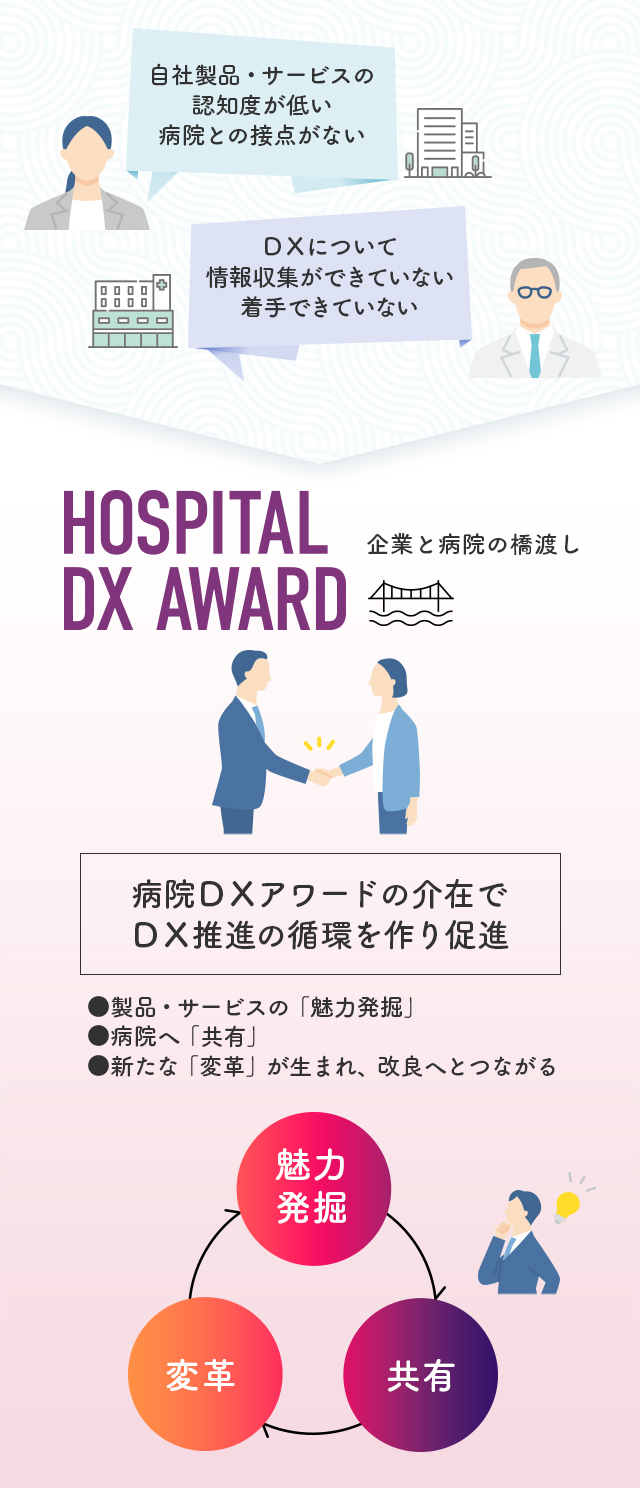 本アワードが介在することで、より良い製品・サービスを開発する企業とDXに課題を抱える病院の橋渡しとなり、