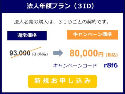 ※法人年額プランは、1IDごと31,000円(税込)で追加も可能です。