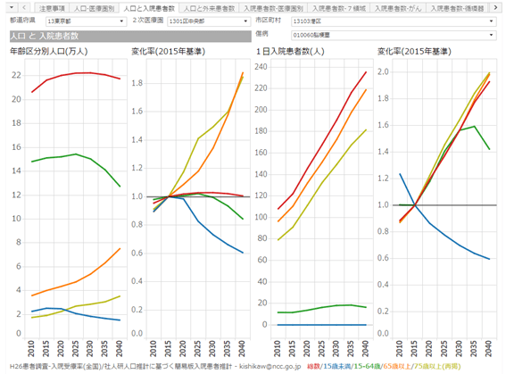 まず、押さえるべき分析として、2次医療圏別(将来患者数は市区町村別の分析も可)のa.将来患者数とb.需給率があります。a.将来患者数は、地域における傷病別患者数の推移を入院・外来別で確認する必要があります。患者がいなければ、外来やベッドは埋められません。