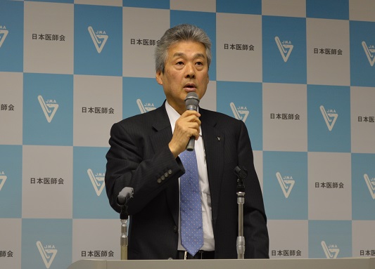 「医師の働き方検討委員会」について話す松本常任理事(10日、日医会館)
