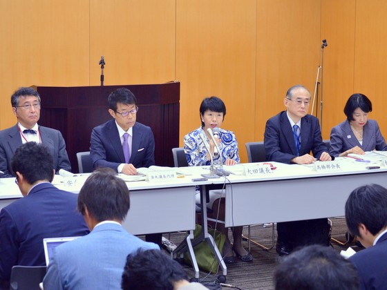答申後に記者会見する規制改革推進会議の委員(23日、東京都内)