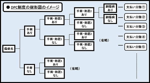 DPC制度では、約500種類ある傷病ごとに、手術・処置などの「あり」「なし」を選択し、最終的に14ケタのDPCコードが決定する=図=。患者の病態に応じた支払い分類を選ぶ「コーディング」によって、病院は診療報酬を請求できる。