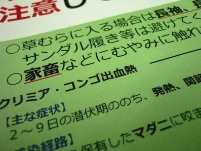 家畜やマダニが媒介するクリミア・コンゴ出血熱について注意を呼び掛ける厚生労働省のポスター