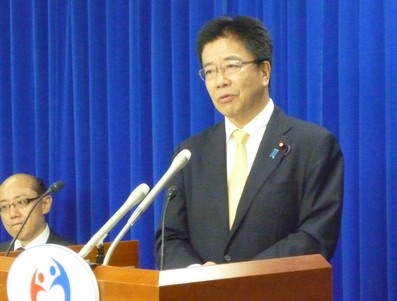 受動喫煙対策について述べる加藤厚労相(3日、厚労省)