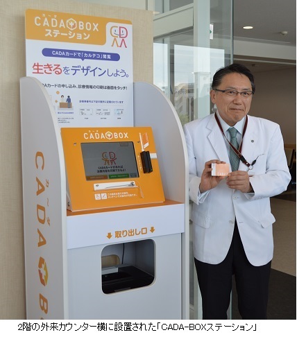 社会医療法人財団董仙会(石川県七尾市、神野正博理事長)が運営する恵寿総合病院(426床)は、メディカル・データ・ビジョン株式会社(MDV、東京都千代田区、岩崎博之社長)が開発した、患者と診療情報を共有する「カルテコ」の機能などを持つ病院向けソリューション「CADA-BOX」を導入。2階の外来カウンターの横に9月4日、「カルテコ」の申し込みや診療情報の印刷ができる専用端末「CADA-BOXステーション」を設置した。同病院では1年間で、1日の外来患者約800人の半分程度が、カルテコを利用すると見込んでいる。