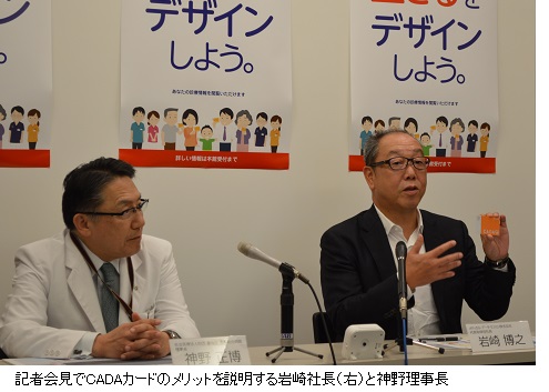恵寿総合病院が9月4日に開いた、「カルテコ」の導入を発表する記者会見でも、この国の社会保障財源が厳しいことや、人口減と少子高齢化により、地域コミュニティーが崩壊の危機に直面していることを、フリップを使って説明し、国が推し進める地域包括ケアシステムが効果的に機能するには、「自助」「互助」「共助」「公助」の基本的な考え方と関係性を理解することが必要と強調した。