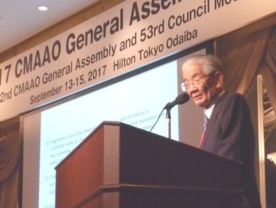 臨床宗教師について話す高久史麿・日本医学会前会長(14日、東京都内)