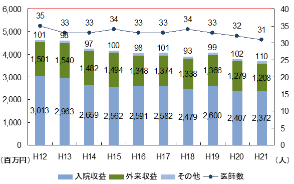 グラフ1 入院収益・外来収益と医師数の推移