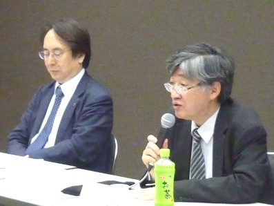 専門研修プログラムなどに対する要望を説明する山下英俊副理事長(右)と松原謙二副理事長(6日、東京都内)