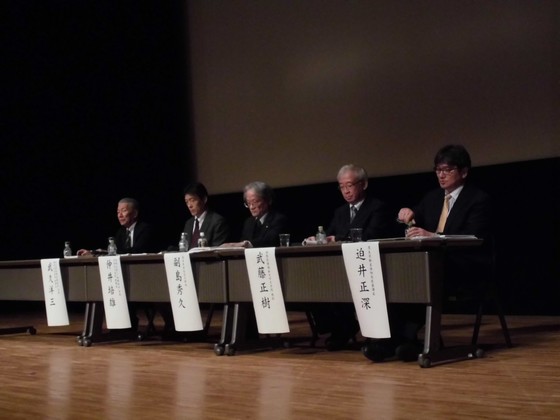 シンポジウムには、迫井課長をはじめ、武久洋三・日本慢性期医療協会会長ら計5人が参加した。
