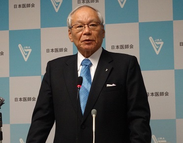 来年度予算についてコメントする横倉会長(29日、日医会館)
