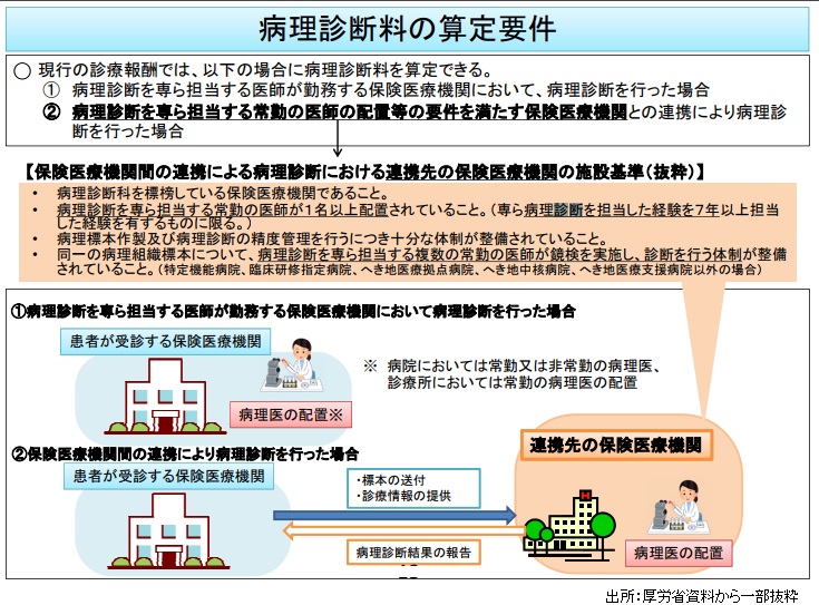 中央社会保険医療協議会は15日の総会で、特定の医療機関に所属しないフリーランスの病理医と連携して病理診断を行うケースでも、2018年度の診療報酬改定で「病理診断料」の算定を新たに認めるべきかを話し合ったが、診療側と支払側の双方から反対意見があり、見送ることになった。【兼松昭夫、君塚靖】