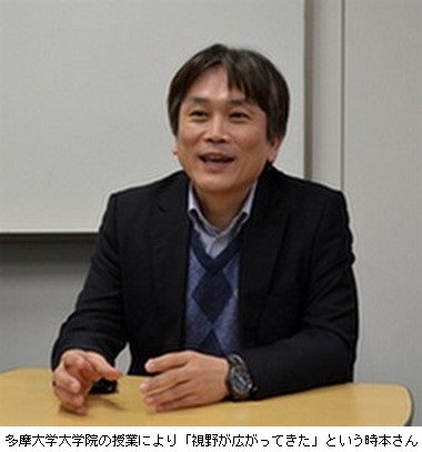 「インターネットで学ぶ大学院や大人数による授業を展開する大学院の体験講義などを幾つか受けましたが、少人数できちんとディスカッションできるのがこの多摩大学大学院MBAコースでした」―。製薬企業アッヴィ合同会社の薬剤師の時本敏充さん(48)は、同コースの受講を決めた理由をこう話す。時本さんがMBAを取得しようと思ったのは、職場で必要性を感じたからだ。
