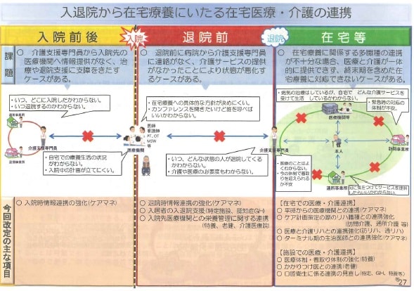 鈴木課長は「医療機関に入る前から、そして医療機関を出る際にもきちんと連携が進むように今回の診療・介護報酬改定で手当てした」と述べた。