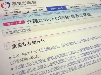 介護ロボット開発・普及の取り組みなどを掲載している厚生労働省のホームページ