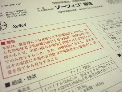 〔塩化ラジウム‐223〕商品名はゾーフィゴ静注。骨転移のある去勢抵抗性前立腺がんに効能・効果がある。「重要な基本的注意」の項に、化学療法未治療で無症候性または軽度症候性の骨転移のある去勢抵抗性前立腺がん患者に対する同剤と...