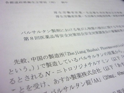 厚生労働省が都道府県に出した高血圧治療剤の発がん性リスクに関する事務連絡