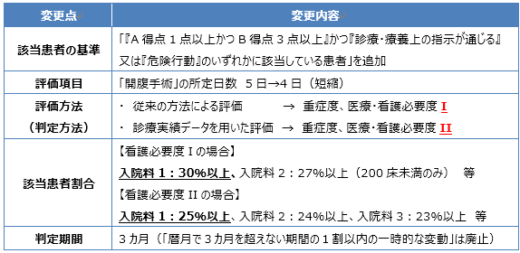 表1 2018年度改定における看護必要度の主な変更点とその内容