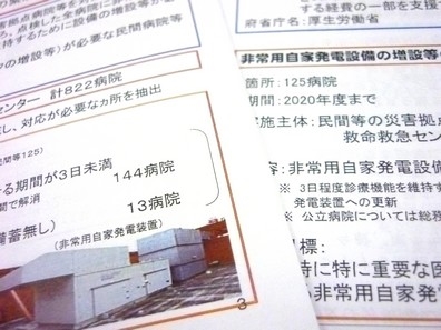 ■北海道地震で停電、自家発電設備の燃料備蓄に課題 該当する病院に補助事業を周知し、積極的な活用を働き掛けていただく―。厚労省は、2月28日に開かれた全国医政関係主管課長会議で、都道府県の担当者に、災害拠点病院の非常用...