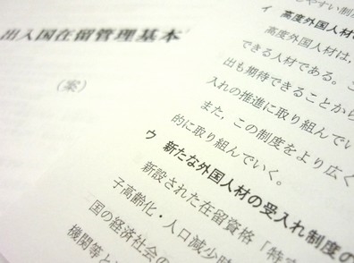介護などの「特定技能」を取り上げている出入国在留管理基本計画案