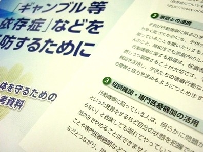 参考資料は、依存症に詳しい、久里浜医療センターの樋口進院長らが作成したもので、ギャンブルをやめられなくなる脳の仕組みや、学校における教育、家庭との連携などを取り上げている。 ギャンブルなど特定の行動に執着する「行...