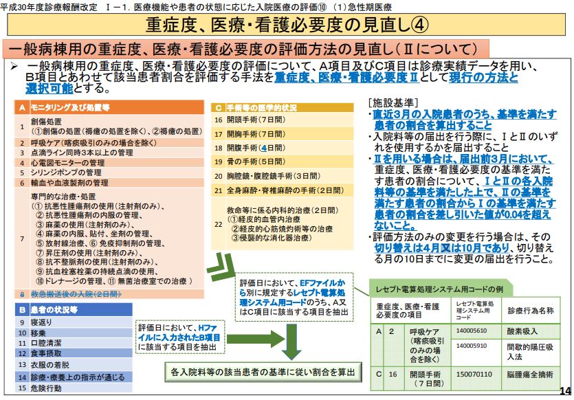 A項目・C項目についてEFファイルをベースに評価する看護必要度IIの動向にも注意が必要であるし、そもそもの項目の見直しにも注意が必要である。そこで、現時点では何に気を付けるべきか、チェックポイントを整理してみたい。