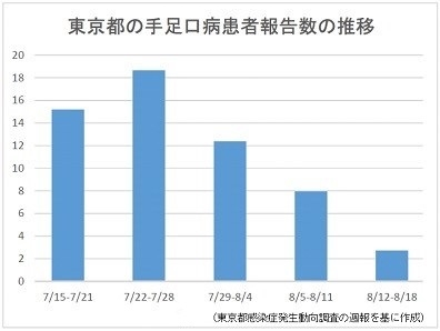 この週の都内の患者報告数は警報基準値(5.0人)を下回り、ピーク時の7分の1ほどになっている。池袋を除く全保健所管内で前週の患者報告数より減ったが、一部の保健所管内では警報基準値を上回った状態が続いており、こうした地域...