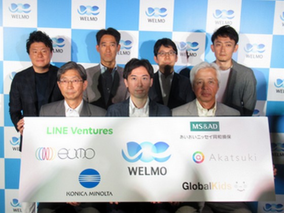 今回の出資元と開いた記者会見。中央がウェルモの鹿野佑介代表取締役CEO(22日、東京都内)