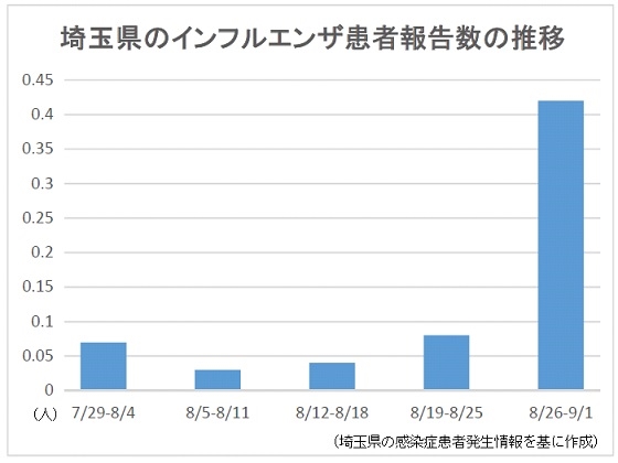 首都圏でインフルエンザの患者報告数が増えている。8月26日から9月1日までの週の定点医療機関当たりの患者報告数は、東京や埼玉などの4都県で前週と比べて軒並み増加。一部の保健所管内では「流行開始」の目安を上回っている。【新井哉】