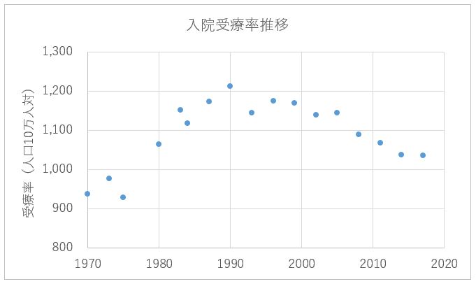 患者調査で示される入院受療率は、1990年をピークに低下している=グラフ1=。入院受療率は、年齢・疾患構成の変化や医療技術の進歩など、さまざまな要因が複雑に影響する。そのため、病院経営環境の変化として入院受療率を的確に理解し、経営判断に生かしているという話はほぼ聞かない。