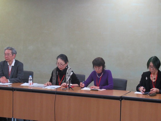記者会見を開いた高齢者や要介護者の支援者ら(11月29日、厚労省)