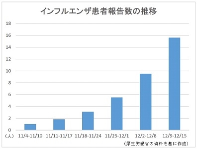 都道府県別では、山口が31.94人で最も多く、警報基準値(30.0人)を超えた。以下は、北海道(29.76人)、宮城(26.69人)、青森(24.14人)、富山(24.04人)、埼玉(20.84人)、大分(19.6人)、福島(19.41人)、熊本(19.38人)...