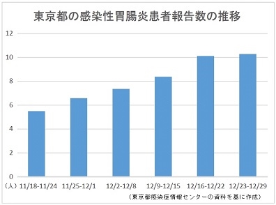 感染性胃腸炎、東京の患者報告数が7週連続で増加