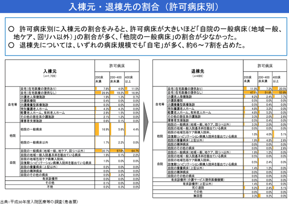 ただ、地域包括ケア病棟は、特に大病院の「入棟元」が、自院の急性期病棟が多く、本来の役割が果たせていないという課題もあった=表2=。