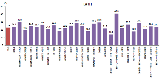 一方低いのは、(1)電気・ガス・熱供給・水道業14.0%(2)複合サービス業18.0%(3)金融業・保険業18.1%-だった。