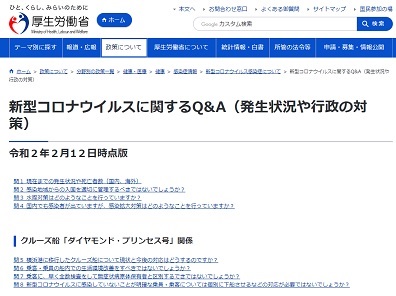 厚労省がサイトに掲載した「新型コロナウイルスに関するQ&A(発生状況や行政の対策)」