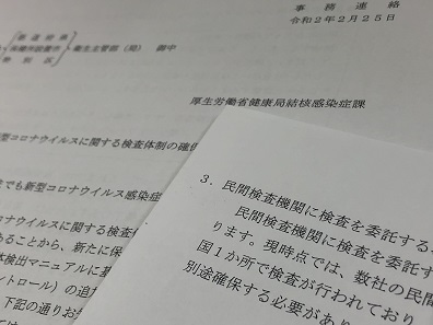 新型コロナウイルスの検査体制に関する厚労省の事務連絡