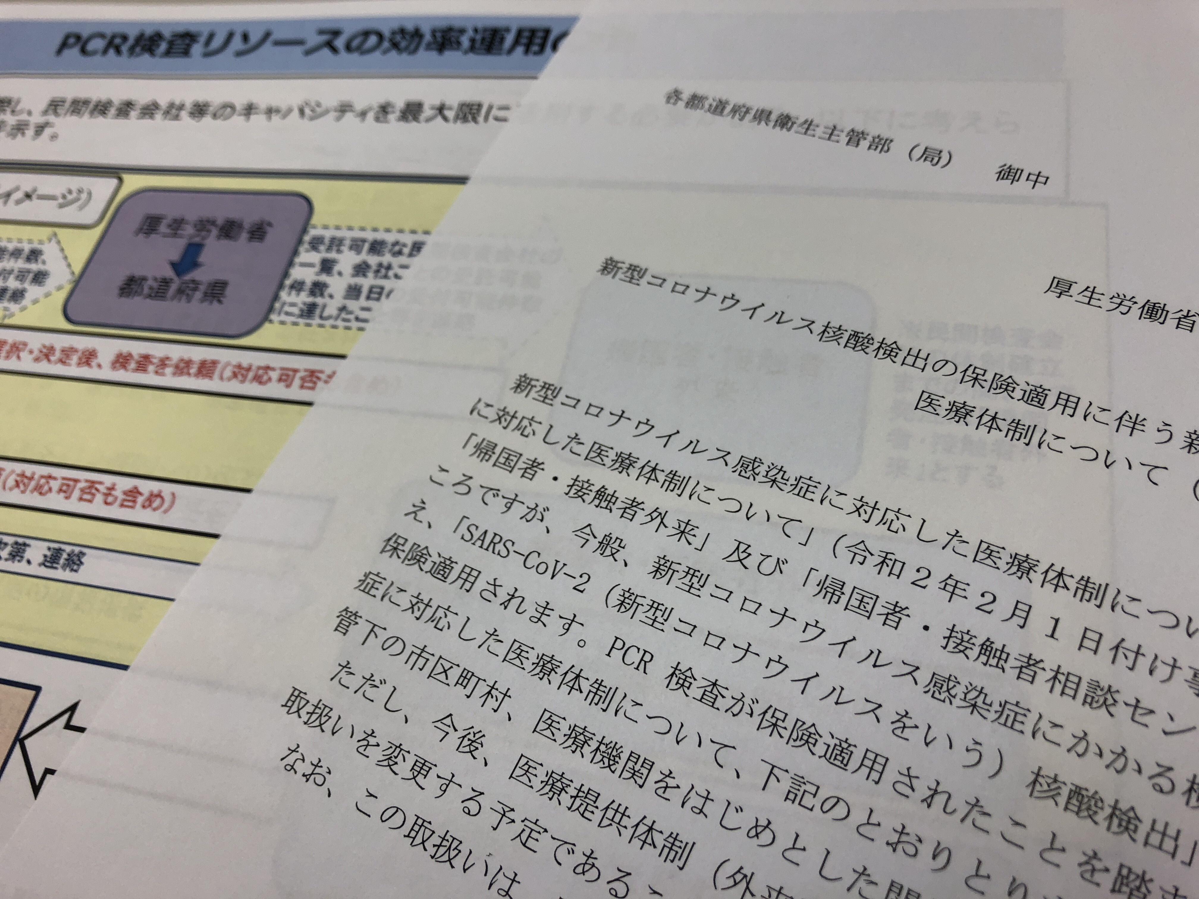 事務連絡では、PCR検査の保険適用後、医師は保健所への相談を介することなく、医師の判断で、新型コロナウイルス感染症が疑われる人に対し、「新型コロナウイルス感染症の診断等を目的としてPCR検査を行うことができる」などと説明している。