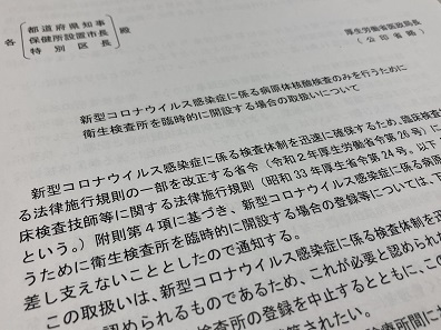 衛生検査所の臨時開設に関する厚労省の事務連絡