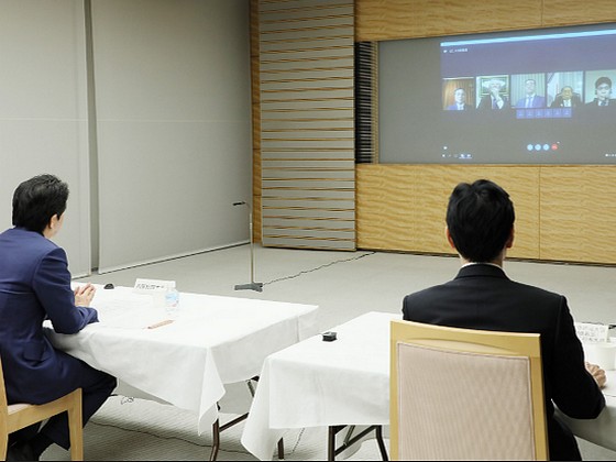 オンラインで開催された27日の経済財政諮問会議(首相官邸ホームページより)