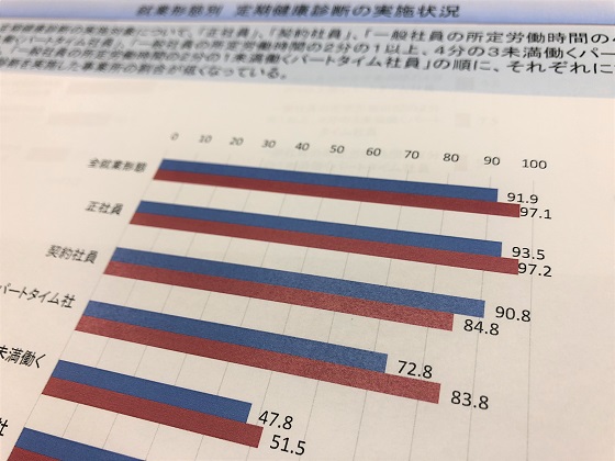 厚労省がホームページに掲載した就業形態別の定期健康診断の実施状況