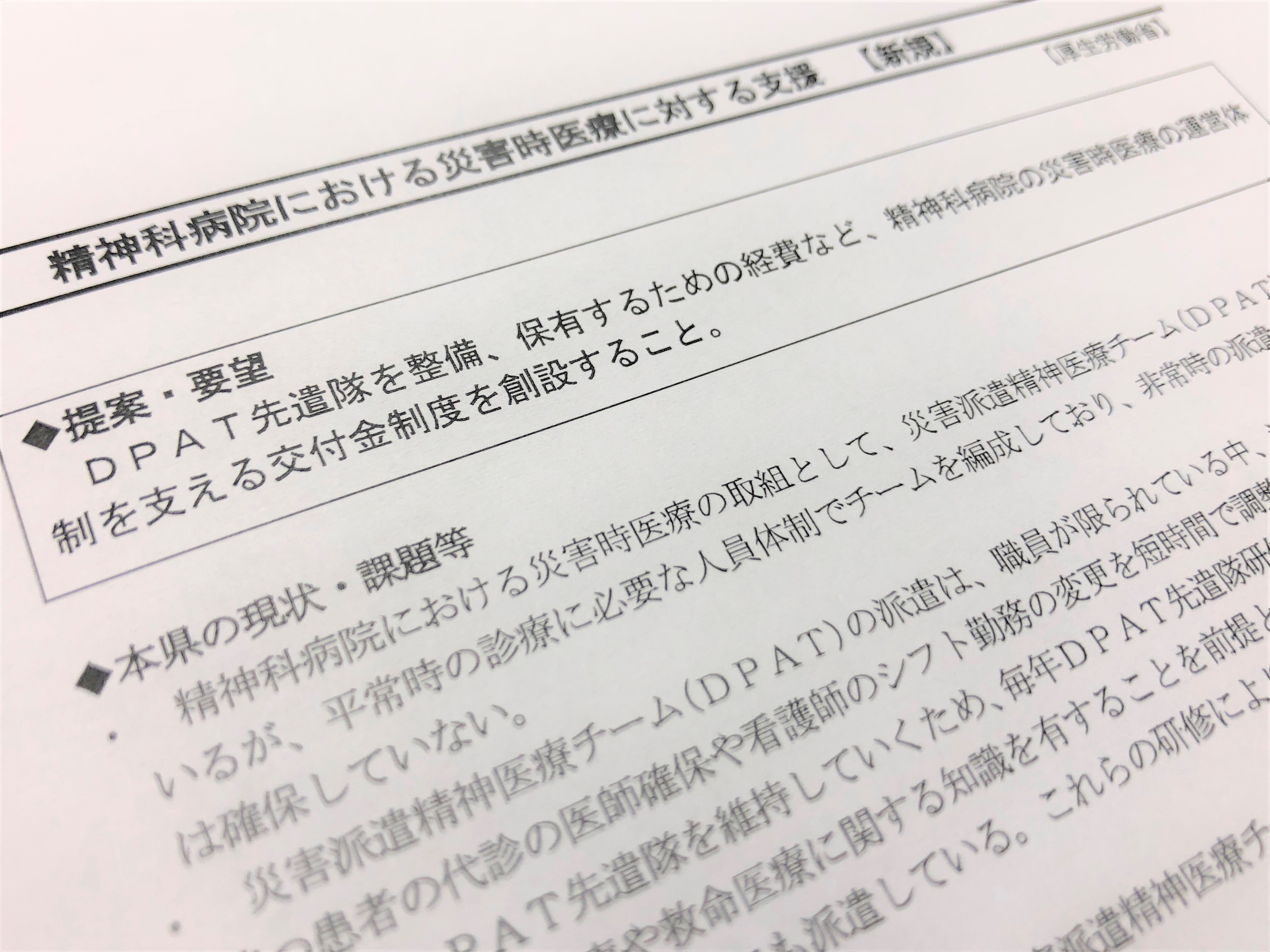 埼玉県が国に要望している「精神科病院における災害時医療に対する支援」