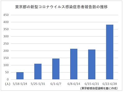 東京のコロナ1週間患者数増加、前週の1.8倍に