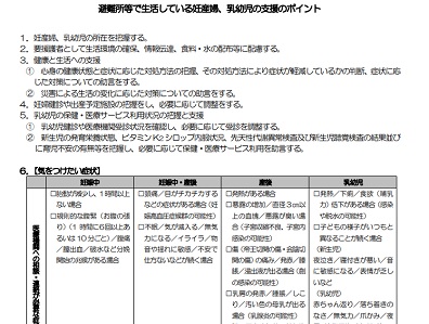 避難所生活の妊産婦・乳幼児支援のポイント周知を