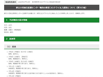 東京都立小児総合医療センター職員の新型コロナウイルス感染に関する報道発表資料
