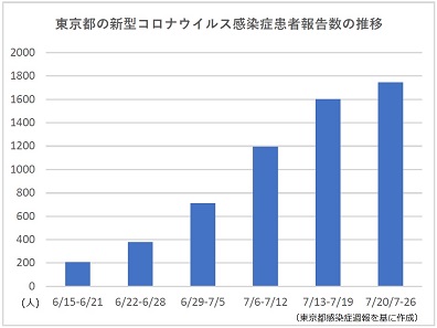東京都のコロナ1週間患者報告数、5週連続で増加