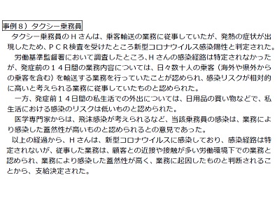 厚労省が新型コロナウイルス感染症に係る労災認定事例に追加したPCR検査陽性タクシー乗務員の事例