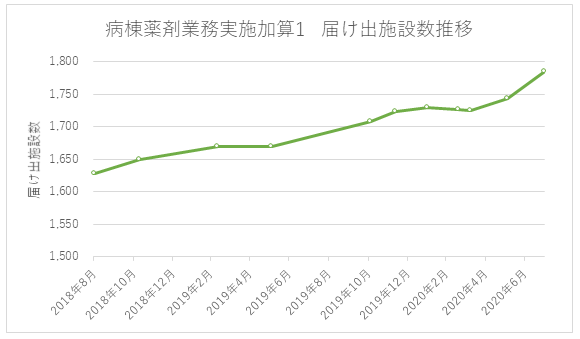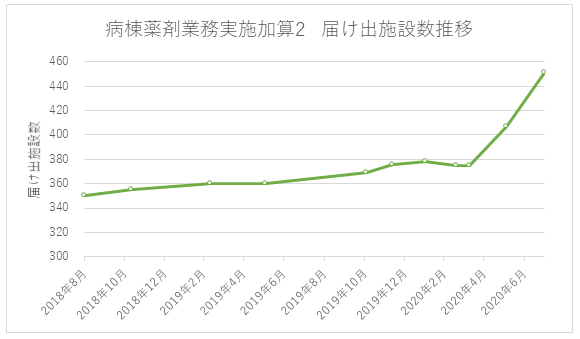 ■病棟薬剤業務実施加算2の届け出が20年度改定後に急増