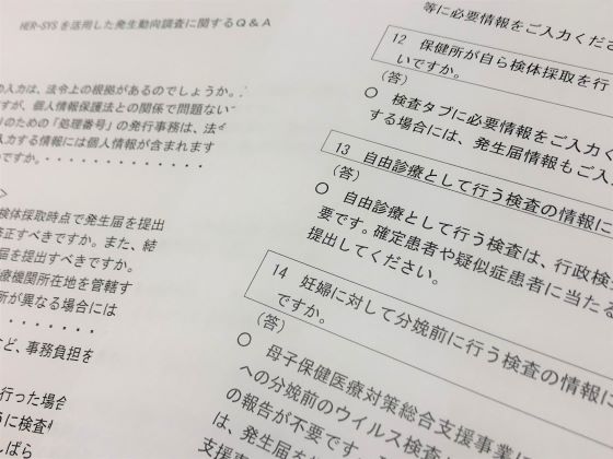 厚生労働省新型コロナウイルス感染症対策推進本部は7月31日、新型コロナウイルス感染者等情報把握・管理システム(HER-SYS)を活用した感染症発生動向調査のQ&Aに関する事務連絡を、都道府県、保健所設置市、特別区に出した。Q&Aを作成したことに触れ、これに留意するよう求めている。【新井哉】