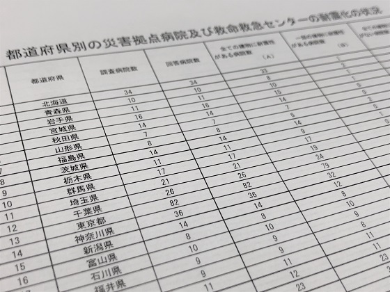 厚労省が公表した都道府県別の災害拠点病院・救命救急センターの耐震化状況